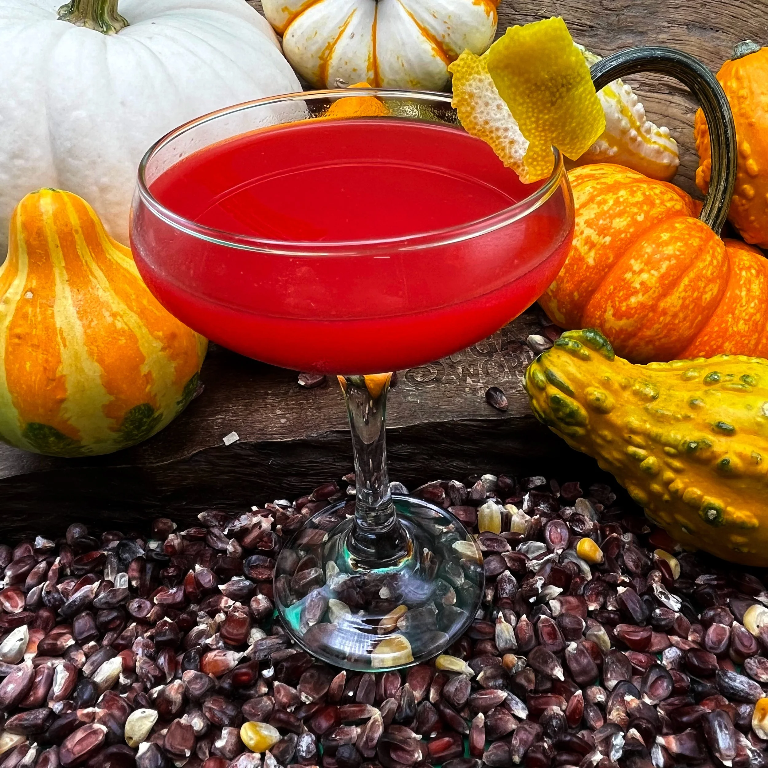 The tart fruits of Fall meet citrus with warming nutty notes for a refreshing sipper.