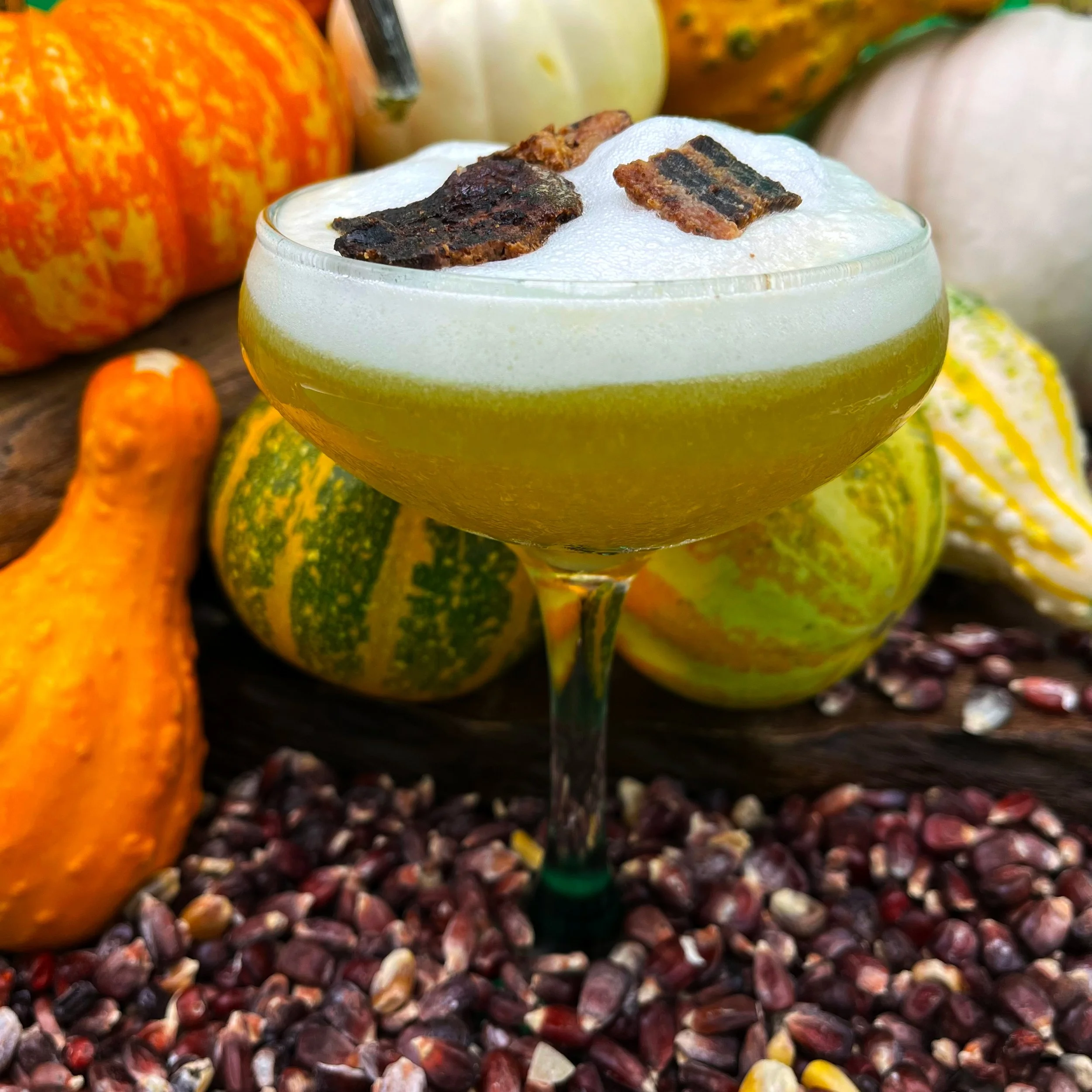 Reward all of your good tricks and best behavior with the perfect treat: our Dos Ochos Blanco Agave Spirit infused with bacon, fresh lemon, lime, & orange juice, honey syrup, an egg white, & a dash of chili bitters.